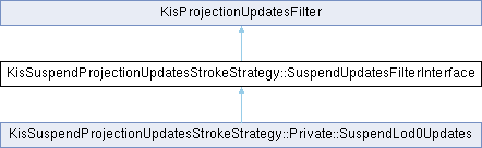 Inheritance diagram for KisSuspendProjectionUpdatesStrokeStrategy::SuspendUpdatesFilterInterface:Public Member Functions | |