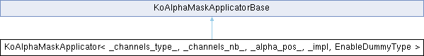 Inheritance diagram for KoAlphaMaskApplicator< _channels_type_, _channels_nb_, _alpha_pos_, _impl, EnableDummyType >:Public Member Functions | |