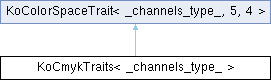 Inheritance diagram for KoCmykTraits< _channels_type_ >:Classes | |