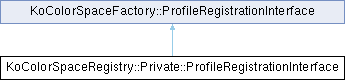 Inheritance diagram for KoColorSpaceRegistry::Private::ProfileRegistrationInterface:Public Member Functions | |