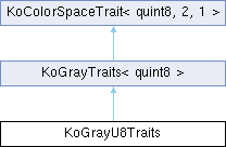 Inheritance diagram for KoGrayU8Traits:Additional Inherited Members | |