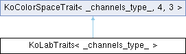Inheritance diagram for KoLabTraits< _channels_type_ >:Classes | |