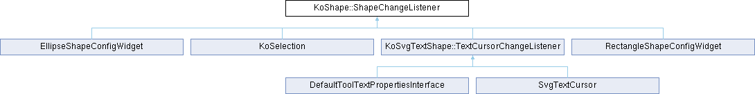 Inheritance diagram for KoShape::ShapeChangeListener:Public Member Functions | |
