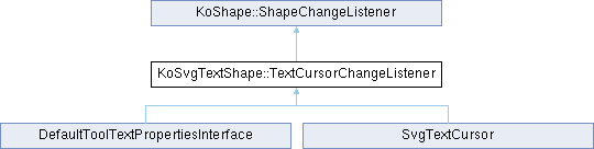 Inheritance diagram for KoSvgTextShape::TextCursorChangeListener:Public Member Functions | |