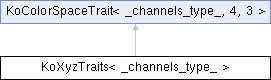Inheritance diagram for KoXyzTraits< _channels_type_ >:Classes | |