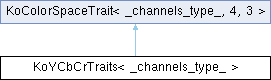 Inheritance diagram for KoYCbCrTraits< _channels_type_ >:Classes | |