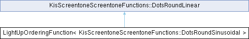 Inheritance diagram for LightUpOrderingFunction< KisScreentoneScreentoneFunctions::DotsRoundSinusoidal >:Additional Inherited Members | |
