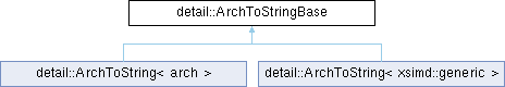 Inheritance diagram for detail::ArchToStringBase:Public Member Functions | |